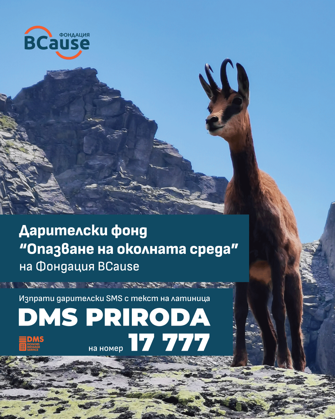 А ако нямате конкретен избор – можете да дарите за Фонд „Опазване на околната среда“ на фондация BCause с дарителски SMS с кодова дума DMS PRIRODA, както и чрез абонаментно дарителство на 5 или 10 лв. или дарение на избрана от вас сума с банкова карта, през ePay или онлайн банкиране.