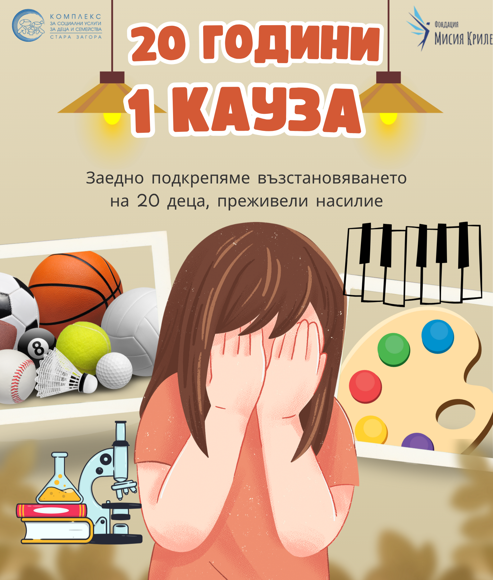 Кампанията има за цел да осигури подкрепа за 20 деца, преживели насилие, които в продължение на една година ще могат да посещават курсове и занимания по музика, изкуство, спорт, наука и други интереси.